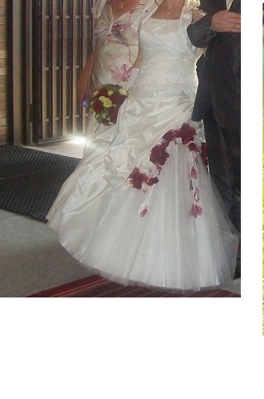 Sukienka ślubna gorset + suknia założona raz, szyta na miare, ok 100 cm w biuście szyta na wysokość z butami ok 170-173 cm, idealnie ukrywa brzuszek ( w moim przypadku po ciąży) kosztowała 3,2 tyś kolor jasny ecru, śliczna, róże ewntualnie można odczepić, rozmiar 40-44 do odebrania pruszków lub warszawa polecam