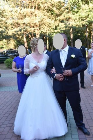 Mam do sprzedania piękną suknię ślubną renomowanej marki Sposabella. Suknia szyta była na miarę. Rozmiar 40-42, na wzrost 165 cm + obcas 7cm. Suknia ślubna kupiona w sierpniu 2015 z kolekcji 2015. Suknia jednoczęściowa z delikatną aplikacją w okolicy talii i bolerkiem, które można zdjąć. Bolerko wyszywane delikatnymi kamykami, które dodają uroku. Tiul sukni jest z domieszka jedwabiu dlatego suknia pięknie się układa również w tańcu.