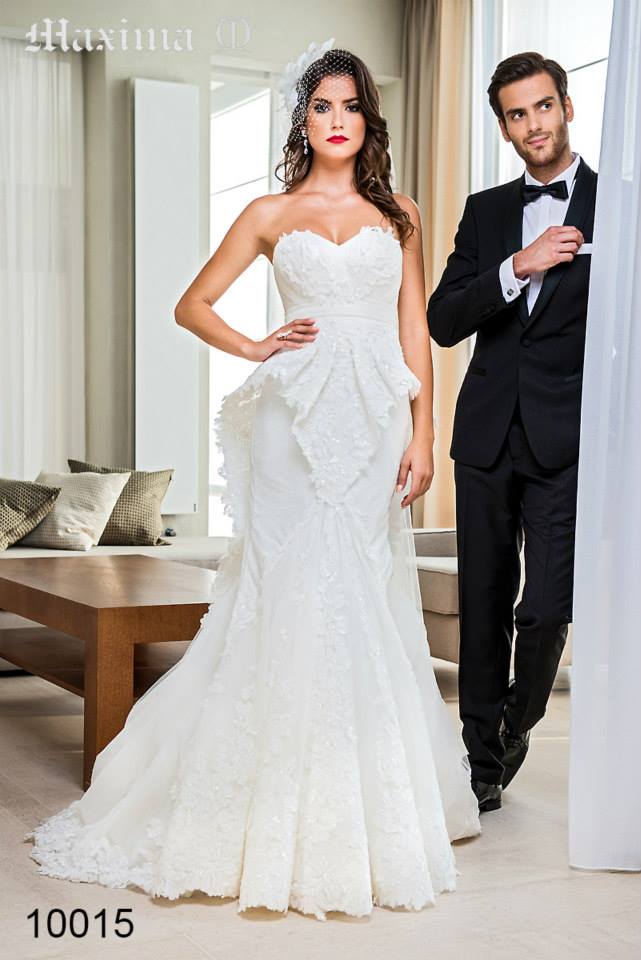 Mam do sprzedania suknię ślubną firmy Maxima. Kupiona 27.07.2015r w Warszawie w Salonie Biały Raj. Piękna nietypowa suknia z baskiną podkreślająca biust i talię. Rozmiar 38, wzrost 168. Posiada tren który można podpinać, z tyłu wiązana. Suknia została wyprana w pralni. Możliwość obejrzenia i zmierzenia w Warszawie. Cena salonowa 3200zl.