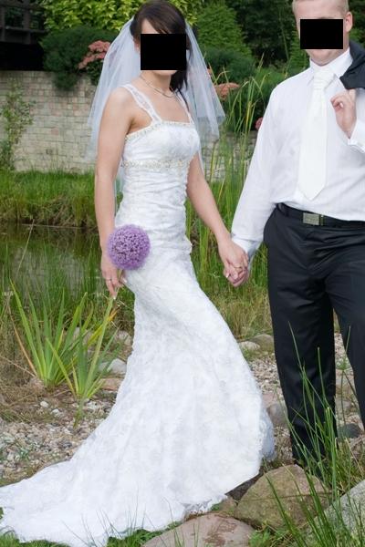 Przepiękna suknia ślubna firmy Urszula Mateja model 901 (rozmiar 36), z krótkim, delikatnym trenem, który można wygodnie upiąć. Suknia jest z białej koronki, w którą wpleciona jest platynowa nitka, dzięki czemu pięknie się mieni. Góra sukni ozdobiona jest kryształkami Swarovskiego. Możliwość odpięcia ramiączek. Kupiona w salonie. Ubrana tylko raz. Po czyszczeniu, nie uszkodzona. Suknia jest olśniewająca!!! Serdecznie zapraszam do przymiarki do Siedlec. Zainteresowanym mogę przesłać dokładniejsze zdjęcia na e-maila.