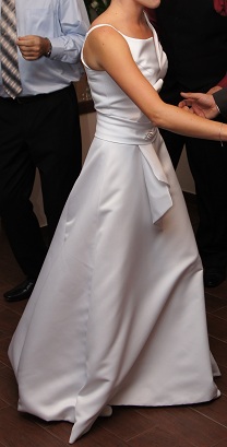 Rozmiar sukni 36, na wąską talię i ok 170cm wzrostu (plus obcas).