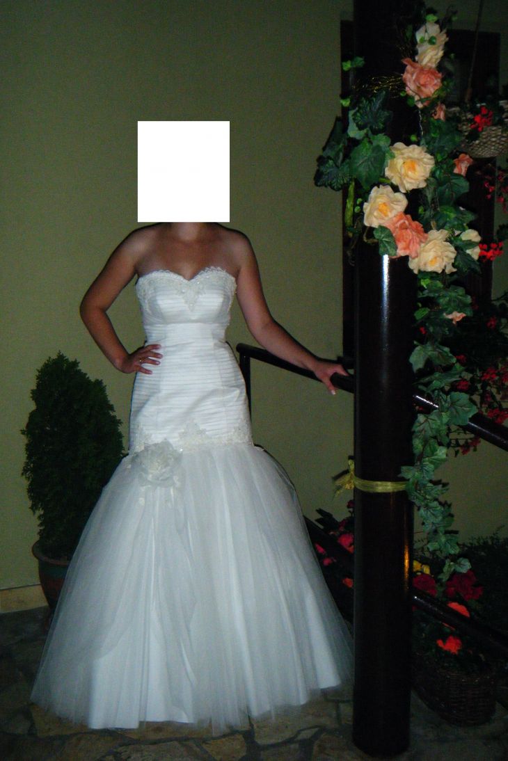 Sprzedam przepiękną suknię ślubną zakupioną w lipcu 2011 w firmowym salonie, która bardzo dobrze podkreśla sylwetkę. Jest bez koła i dlatego też jest bardzo wygodna i komfortowa, a mimo to rozłożysta. Posiada koronkę przy biuście oraz poniżej ud, a uroku dodaje jej przepiękny kwiat. Z tyłu zapięcie na zamek, który przykryty jest guziczkami.