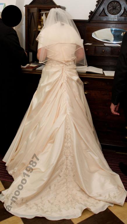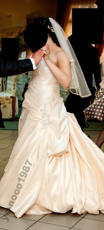 Witam, sprzedam suknię ślubną z salonu Morii Lee, z kolekcji Ronalda Joyce'a. Suknia jest w rozmiarze 38, ale była poszerzana i teraz ma rozmiar 40 - 42. Suknia w kolorze ecru, jednoczęściowa, w kształcie litery A, sznurowana, gorset w kształcie serca, co pięknie podkreśla talię i biust. Suknia ma wyjątkowo piękny długi tren ozdobiony aplikacją z kryształków,(taka sama aplikacja również na gorsecie) tren można podpiąć na guziki. Suknia do wzrostu 165/170 cm + obcas. Do sukni dołączam koło, dzięki któremu można regulować jej długości, tak żeby jej nie przydeptać, co ułatwia poruszanie się. GRATIS daje welon i szal. Suknia została wyczyszczona chemicznie, jej stan oceniam na bardzo dobry. Po wcześniejszym umówieniu suknię można przymierzyć u mnie, w okolicach Warszawy. W razie pytań, proszę o kontakt e-mailowy karolina_wrona89@o2.pl lub tel: 726-229-888. Cena do negocjacji. Zachęcam wszystkie Panny Młode!