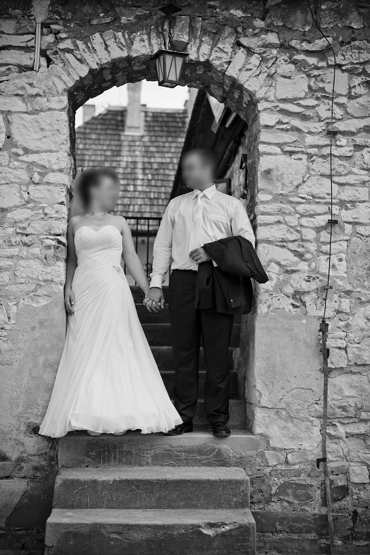 Suknia jest naprawdę wyjątkowa i oryginalna, delikatnie zdobiona przy dekolcie i przy talii, lekka, pięknie się układa na sylwetce, a materiał jest miły w dotyku. Suknia wiązana jest gorsetowo, można więc bez problemu dopasować siłę wiązania do sylwetki.