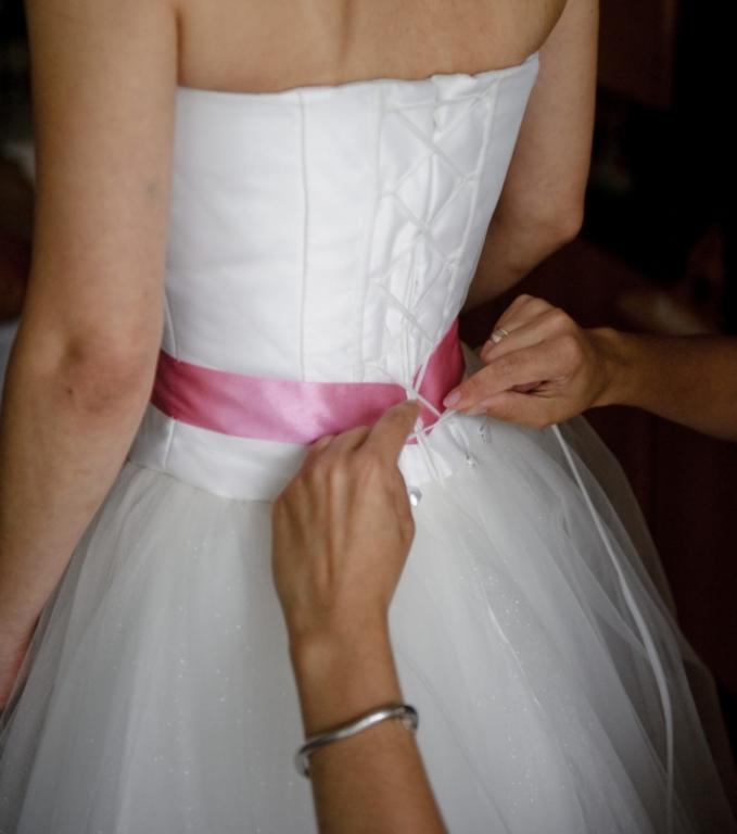 serdecznie zapraszam i zachęcam Panie do zakupu przepięknej sukni ślubnej, model Princessa. Jest to jednoczęściowa suknia w kolorze delikatnym ecru, szyta na wymiar (noszę rozmiar 34, ale sznurowany gorset umożliwia dopasowanie do figury), na wzrost 158 cm + 14cm obcas, z możliwością skrócenia. Dodatkowo oddzielna halka, dzięki czemu suknia może być szersza lub węższa. Piękny gorset,zdobiony różową kokardą(kolor z możliwością zmiany). Dół gładki, składa się z kilku warstw tiulu, a przedostatnia z nich pokryta brokatem, co sprawia, że suknia cudownie się mieni.