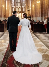 Sprzedam suknię ślubną Agnes 11641. Suknia kupiona w salonie Scarabeo w Warszawie za 2650zł (posiadam rachunek). Jestem pierwszą właścicielką, wykorzystałam ją na swoim ślubie i sesji plenerowej. Suknia ma piękny tren, który łatwo się podpina i wygląda bardzo elegancko. Suknia ma zdobioną koronkową górę i gładki delikatny satynowy dół pokryty organzą. Jest to literka A, która pasuje do każdej figury. Warto umówić się na przymiarkę, która NIC NIE KOSZTUJE.Moja mama jest krawcową więc mogę zaprosić ją na Twoją przymiarkę żeby fachowym okiem podpowiedziała, czy uda się zrobić przeróbki do Twojej figury (ona ich nie wykonuje ale szczerze powie, jak się sprawy mają). Suknia zrobiła ogromne wrażenie na gościach, określano ją jako elegancką, delikatną, dziewczęcą.