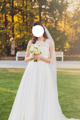 Wystawiam na aukcji moją suknię ślubną wraz z welonem (ślub w październiku 2014).