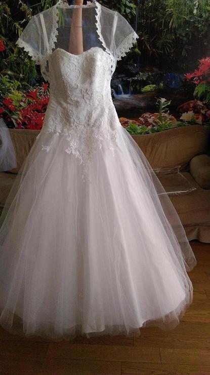 Niska cena spowodowana jest uszkodzeniami tiulu,które przyszła Panna Młoda może zechce naprawić (pierwotnie suknia kosztowała ponad 2,5 tyś)