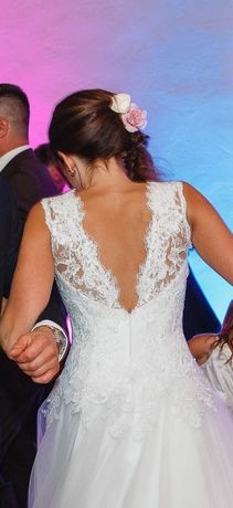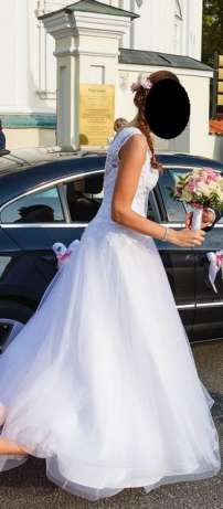 Mam do sprzedania białą suknię ślubną w kształcie litery A, kupioną w zeszłym roku w salonie Biały Raj w Warszawie. Suknia założona jeden raz (październik 2016)