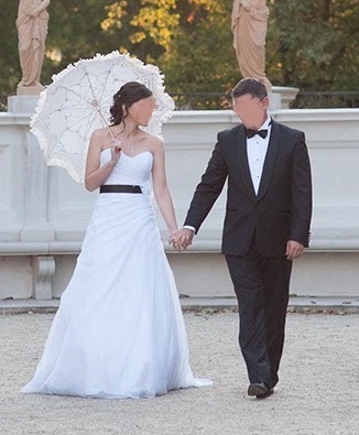 Rozmiar sukni 36 uszyta na wzrost 168 + 7 cm obcas.