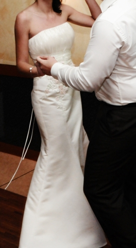 Dla panny młodej nie lubiącej banalnych rozwiązań. Szukającej niespotykanej kreacji, klasyczna,bez falban elegancka, bardzo wygodna. Kolor: ecru. Możliwa przymiarka w Warszawie. Dodatki: bolerko, welon