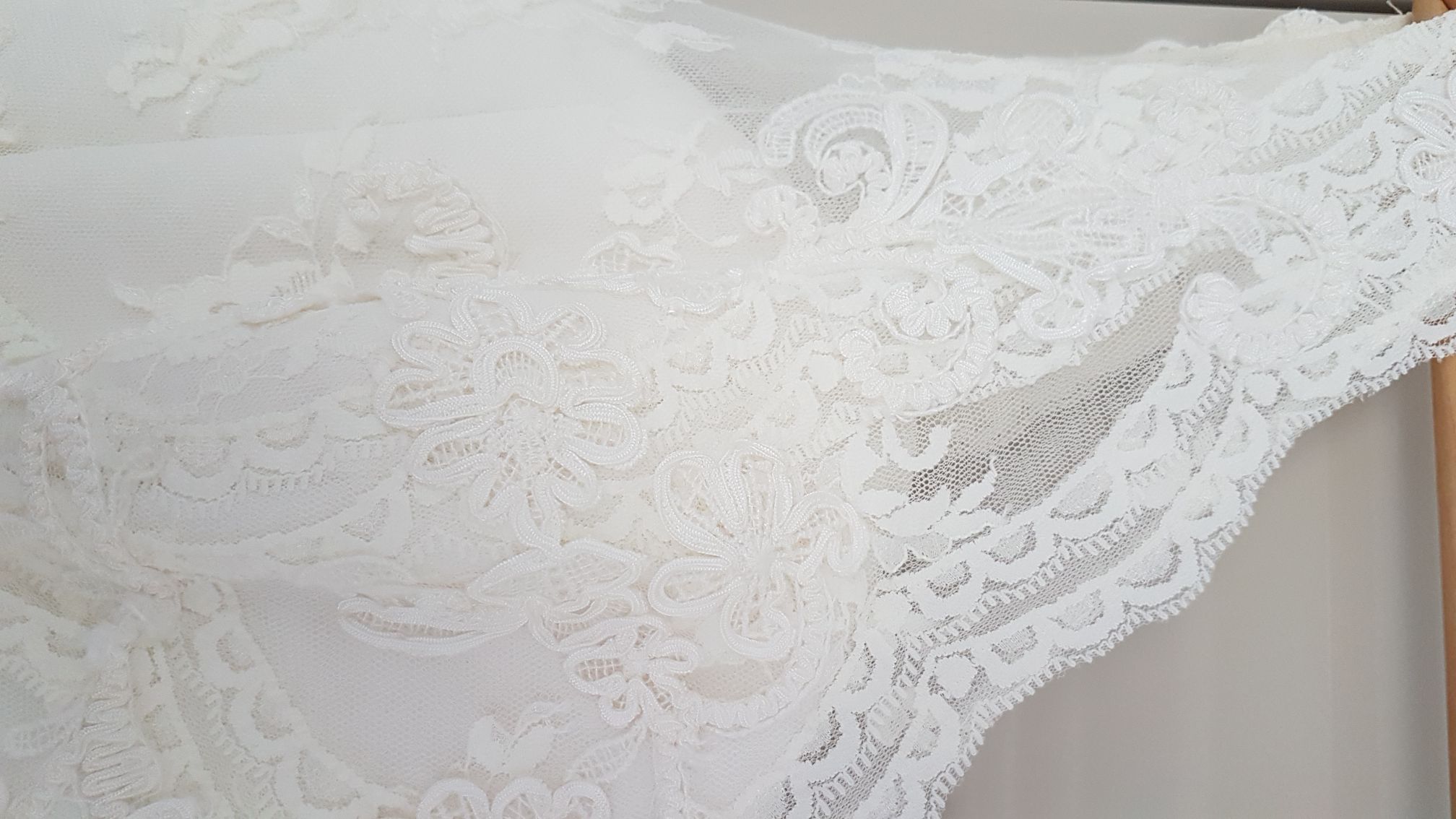 Przedmiotem sprzedaży jest przepiękna suknia ślubna marki Agnes z wyciętymi plecami, lekko przedłużonym gorsetem (poprawia figurę:), koronkowo-gipiurową górą , na ramiączka oraz plisowaną, tiulową spódnicą. Kształt literka A. Pasek łatwy do usunięcia. Zapraszam do kontaktu i zakupu Panie o biuście od miseczki C wzwyż.