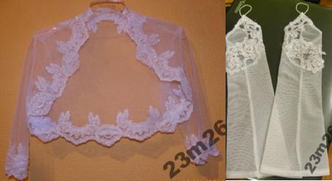 Do sukni dodaję również szyte na miarę bolerko z rękawem 3/4 oraz rękawiczki.