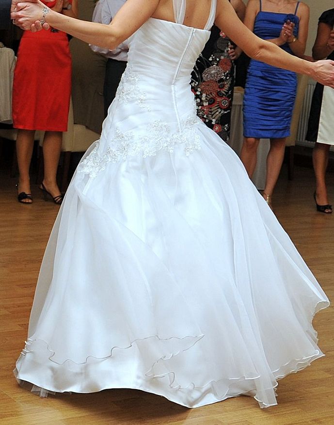 Sprzedam suknię model "bayo" + dodatki: halka i welon, rozmiar 34/36, kształt "A", kupiona w salonie w Warszawie (cena 26oo PLN), stan bardzo dobry, sukienka na wzrost 160cm + 6-7 cm obcas, choć można o kilka cm rozszerzyć lub zwęzić koło halki zmieniając długość sukni. Szczerze polecam:)