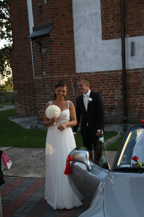 Delikatna suknia ślubna oryginalny model Cassia z kolekcji Maggie Sottero z trenem (posiadam umowę kupna-sprzedaży z salonu w Białymstoku) . Suknia jest jednoczęściowa, uszyta z jedwabnego szyfonu, który przy każdym ruchu delikatnie faluje. Wstawki z Koronki na sukni delikatnie połyskują za sprawą platynowej nitki i oryginalnych kamieni Swarovskiego. Suknia jest koloru ivory (jasny) , z usztywniona częścią górną, która powyżej koronki na biuście jest wzbogacona delikatnymi marszczeniami . Suknia jest zapinana z tyłu na ukryty zamek w tylnej części. Ramiączka sukni są z tej samej koronki, która zdobi talię, zwężane z przodu , lekko rozszerzane ku tyłowi , dzięki czemu znajdujący się na koronce wzór jest lepiej wyeksponowany na plecach. Tren w każdej chwili wedle życzenia można podpiąć. Do sukni jest halka - bez koła. Dla kupującej mogę oddać w prezencie buty ślubne (pantofelki całościowo kryte) rozmiar 38. Sun]kia była używana tylko raz , jest po jednym weselu, była czyszczona I odświeżana w pralni. Na sukni jest dwa małe uszkodzenia, na samym dole przy szafie I drugie również z na tyle. Dobra krawcowa na pewno temu zaradzi. Jednakże płynny fason sukni sprawia że jest w ciągłym ruchu i uszkodzenia są mało widoczne, dodatkowo tren odgrywa również duża rolę w tuszowaniu, a po jego podpięciu powstaje pięknie układająca się fala.