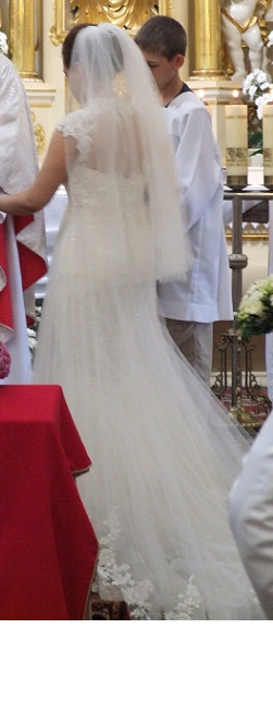 Sprzedam piekną suknię Enzoani Emily kupioną w salonie Tylko Ona. Jestem pierwszą właścicielką, suknia użyta w czerwcu 2011. Składa się z dwóch warstw, pierwsza to dopasowana rybka, druga to zwiewna warstwa cienkiego tiulu wykończona koronką. Całość wysadzana koralikami pięknie sie mieni. Suknia posiada podpinany tren, który nie przeszkadza w tańcu. Chętnie odpowiem na dodatkowe pytania i prześlę więcej zdjęć ( wera86@o2.pl). Zapraszam na przymiarkę. Welon gratis.