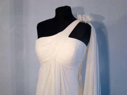 Rozmiar: 36/38. Idealna na osobę o wymiarach : talia - do 70 cm, biodra - do 90 cm, biust -do 90 cm pod biustem -do 80 cm. Kolor: IVORY / „Naturalna biel” zwana potocznie śmietanową. Pasuje na wzrost ok. 167 cm plus 8-10 cm obcas.