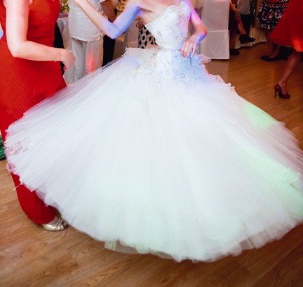 Suknię naprawdę doskonale się nosiło: niezwykle wygodna i lekka (!), mimo swych obfitych rozmiarów (szeroki, pięknie układający się w tańcu dół). Robi wrażenie i jest oryginalna - takiego modelu nie znajdziesz w co drugim odwiedzanym salonie!