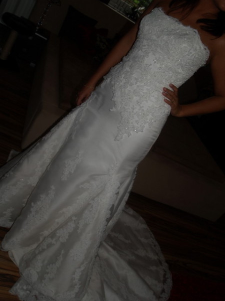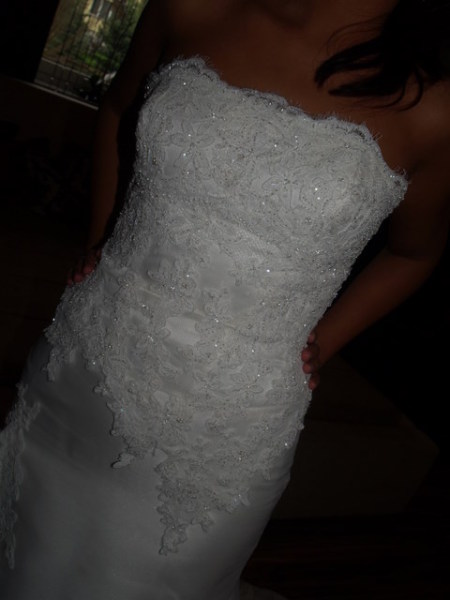 Suknia sklada sie z sukienki oraz "koszulki" koronkowej ktora mozna w kazdej chwili sciagnac.Doskonale sprawdziła sie w kościele.