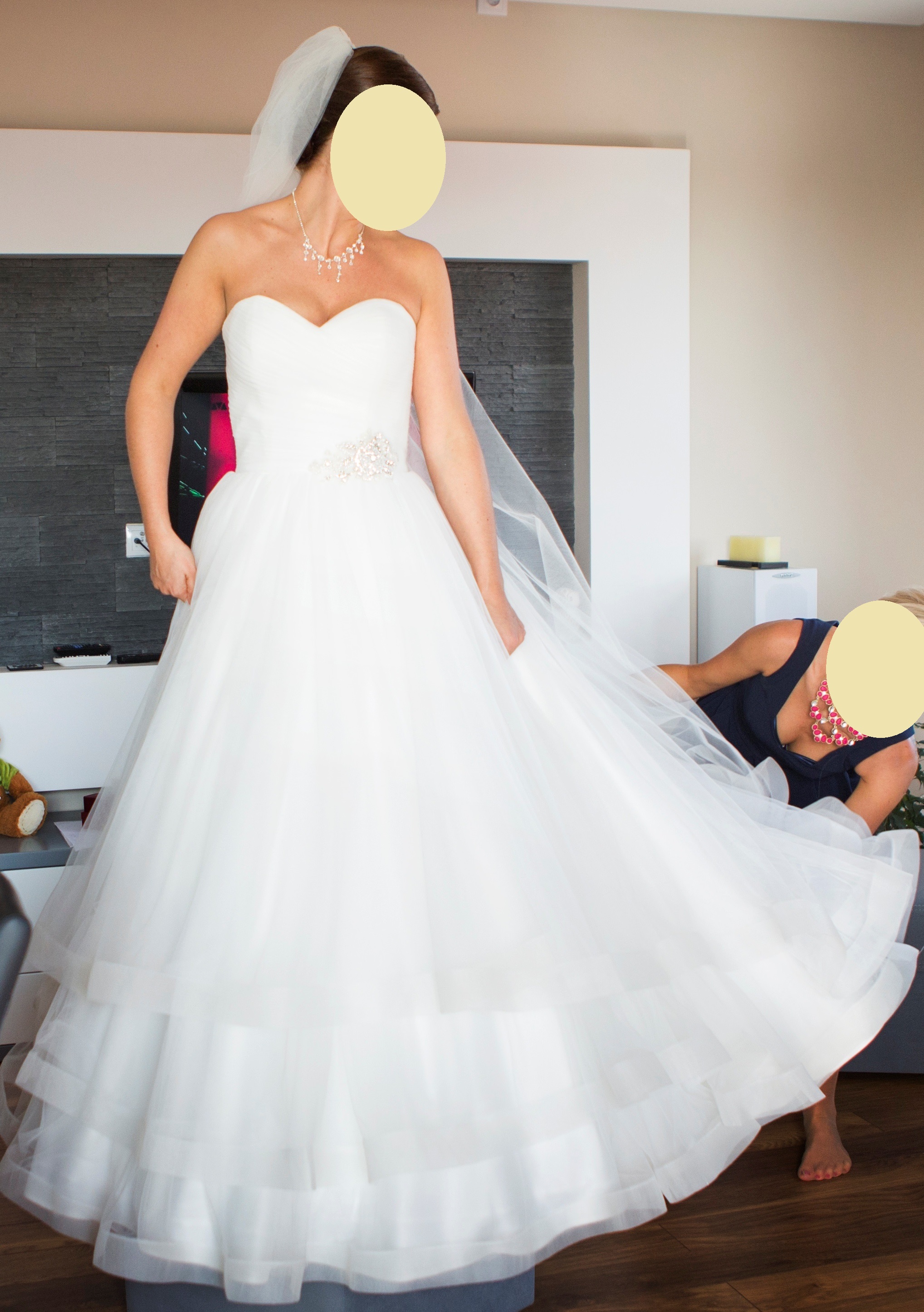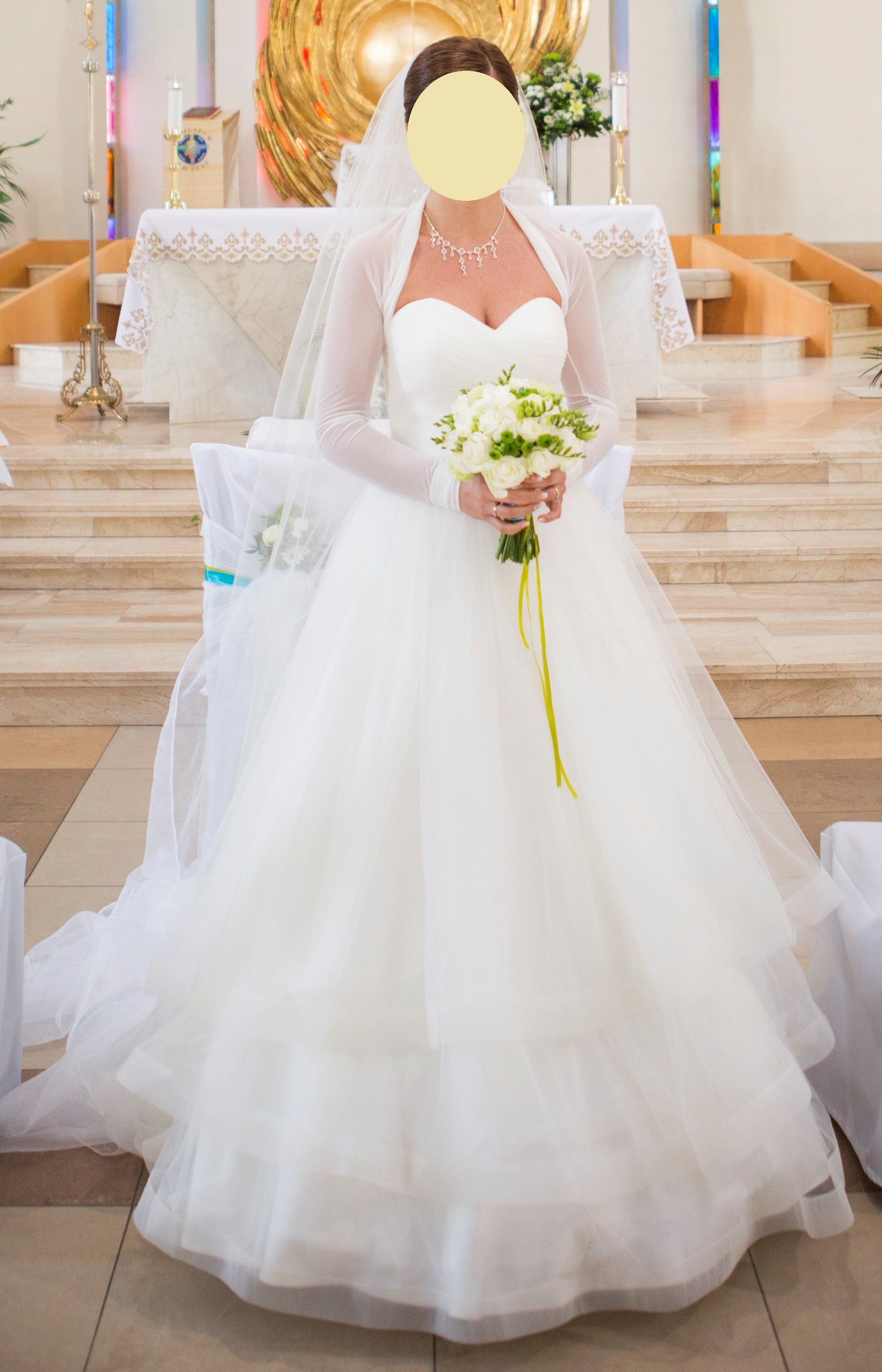 Witam serdecznie, posiadam do sprzedania przepiękną suknię ślubną model Sincerity 3890 w kolorze ivory. Suknia sprzedawana jest z bolerkiem i welonem. Rozmiar 8 (36/38). Suknia na wzrost 170 cm+8cm obcasa. Gorset wycięty w serduszko, co przepięknie podkreśla kształt biustu. Suknia z podpinanym trenem oraz z regulowanym kołem. Posiada minimalne ślady użytkowania. Przed zakupem zostanie oddana do czyszczenia lub cena zostanie pomniejszona na usługę czyszczenia.
