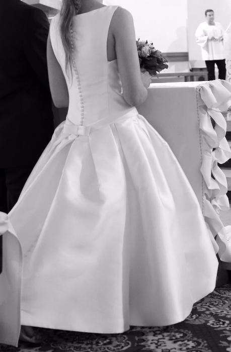 Suknia szyta z uwzględnieniem moich poprawek na podstawie sukni BARCAZA firmy Pronovias.
