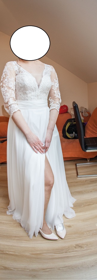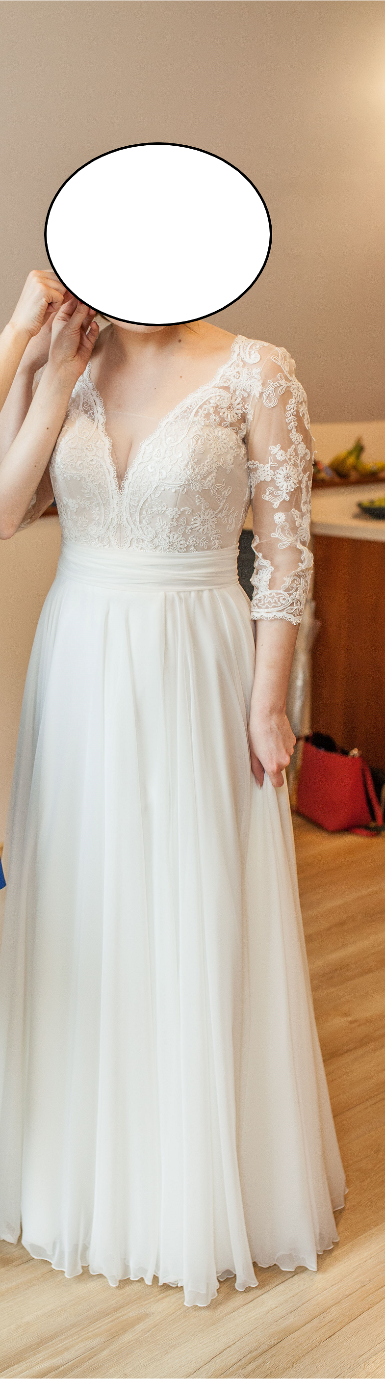 Witam. Sprzedam oryginalną suknie ślubną Surina zakupioną w salonie Afrodyta w Rzeszowie . Suknia jest w kolorze białym szyta na wzrost 168 + obcas 6-7 cm. Suknia jednoczęściowa, zapinana na zamek i 4 ozdobne guziczki na koronce. Pięknie wycięte plecy, delikatne rozcięcie na prawej nodze i zaznaczona talia zapewniają, że prezentuje się ona wyjątkowo. Oczywiście z uwagi na prosty krój bardzo łatwo będzie można ją skrócić. Suknia pochodzi z kolekcji 2018. W związku z tym, że zdecydowaliśmy się jedynie na obiad, nie na wesele suknia jest w bardzo dobrym stanie. Oczywiście suknia jest wyprana, posiadam paragon do wglądu. Cena, za którą została zakupiona to 3200 zł.