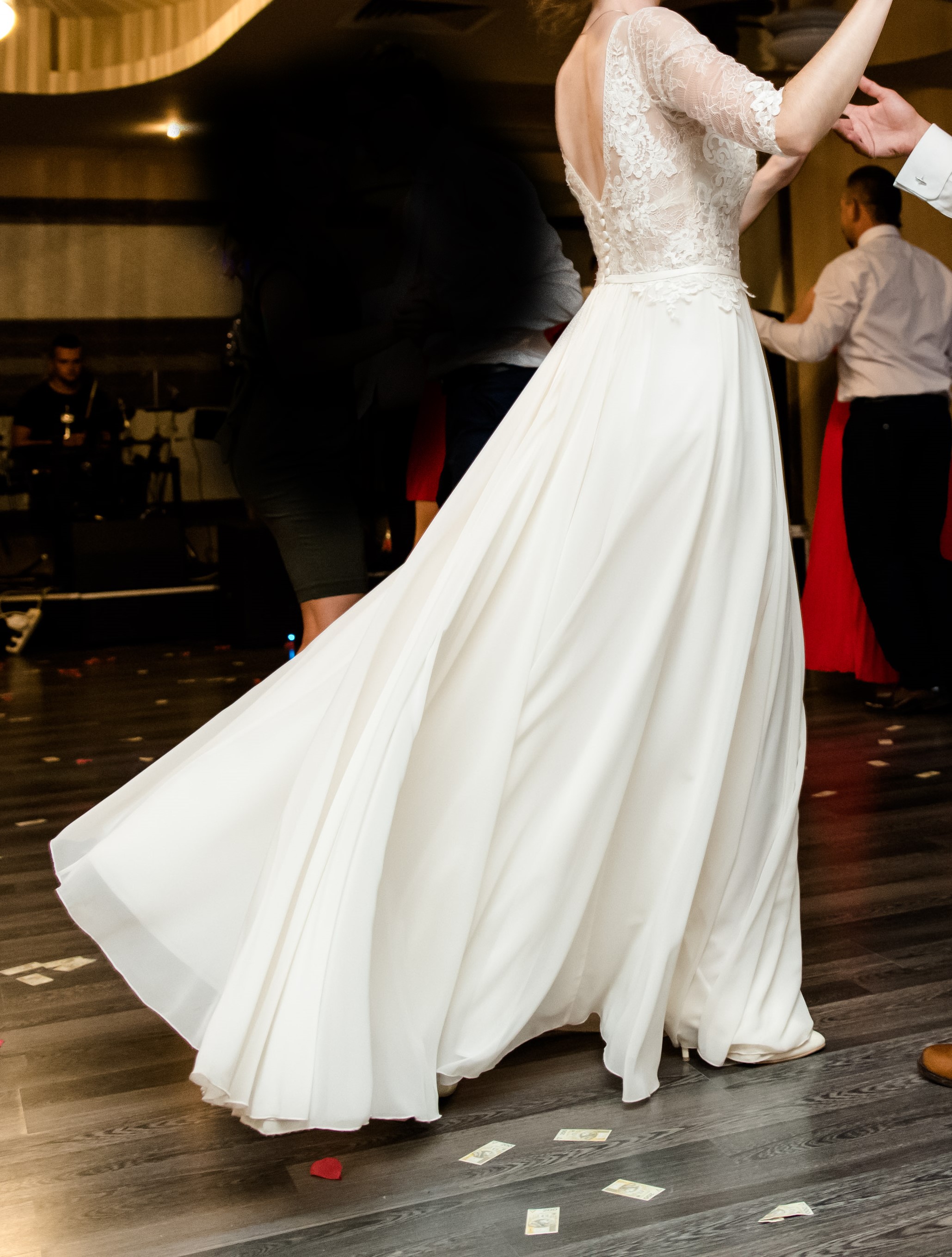 Suknia jest bardzo lekka i wygodna, pięknie układa się w tańcu, nie krępuje ruchów.
