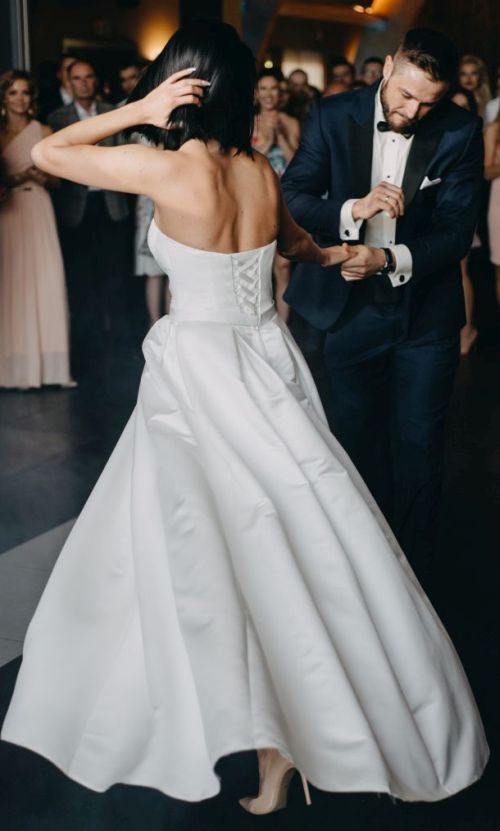 Suknia doskonale się nosi, nie zsuwa się, nie gniecie, zachwyciła wszystkich gości prostotą i ponadczasową elegancją.