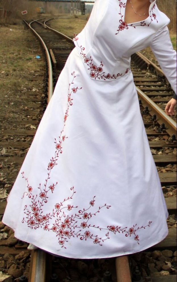Suknia ślubna, własnego projektu, szyta w salonie Vivien Vigo za 2200 zł. Jest 2-częściowa. Można ją dopasować do odpowiedniej pory roku.Chętnie oddam ją za symboliczną sumę. Chciałabym, żeby jeszcze ktoś ją włożył i ciekawie wyglądał.