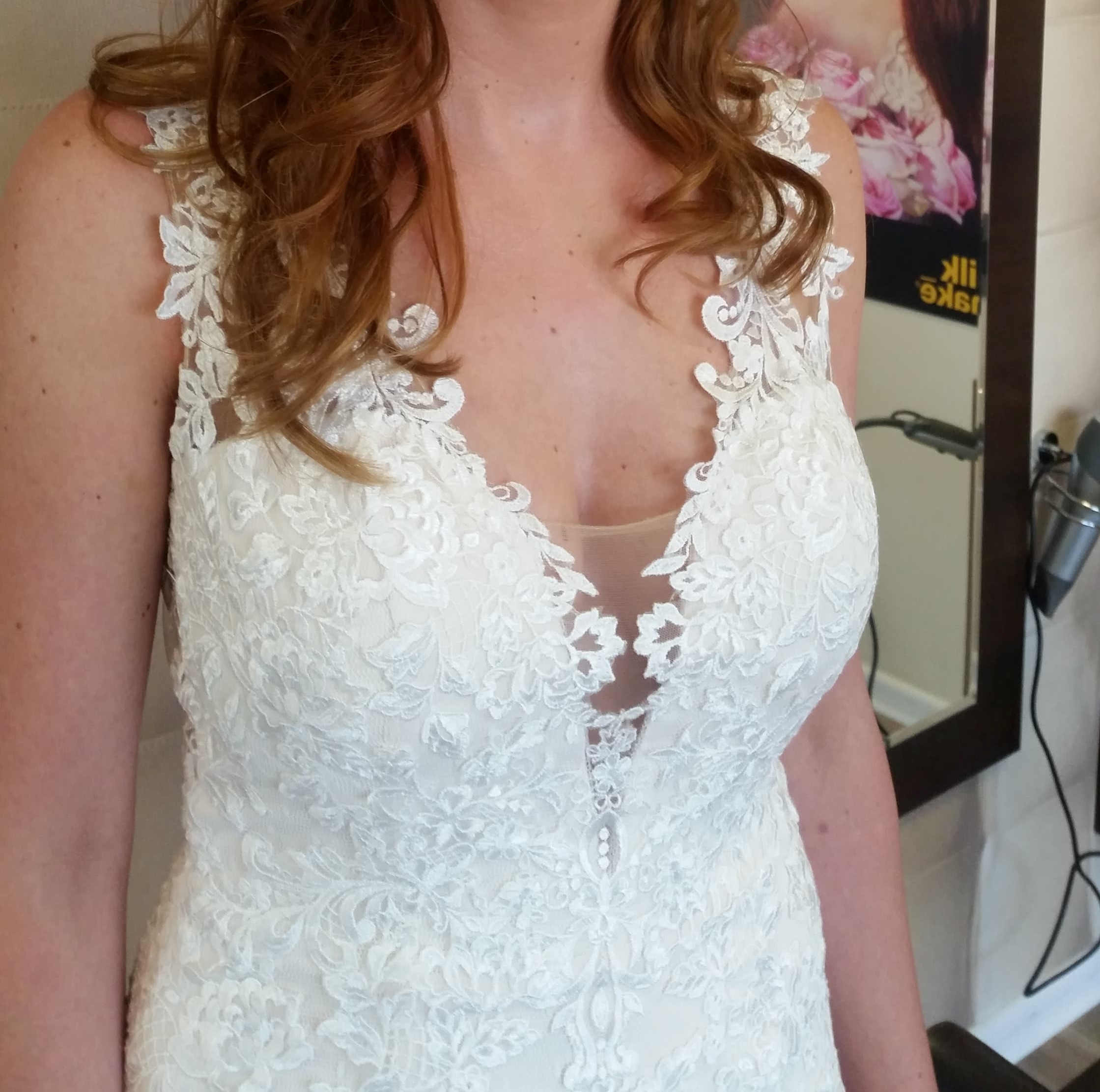 Suknia posiada elastyczną podszewkę i wszyte miseczki dzięki czemu nie trzeba wkładać biustonosza. Miseczki można wymienić i dopasować do rozmiaru biustu. Suknia nie posiada trenu.