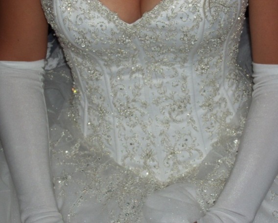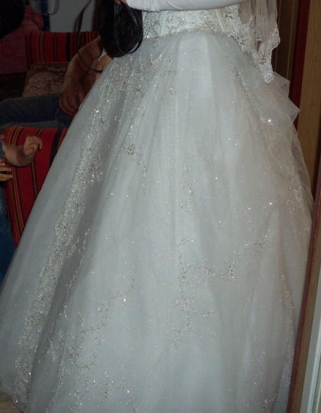 Przepiękna suknia ślubna, zdobiona kryształkami Svaworskiego, pięknie mieni się w słońcu. Ma śliczny podpinany tren, wygodna w tańcu. Na wzrost tak do 175, ja miałam obcas 8cm. Polecam bo naprawdę wart. Zapraszam do przymiarki.