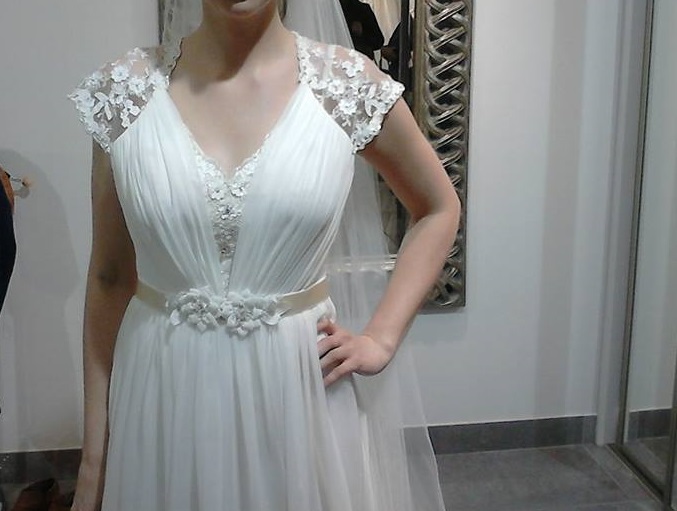 Mam do sprzedania nową suknię ślubną. Suknia była wkładana tylko podczas przymierzania. Suknia jest śliczna, w greckim stylu z trenem, który można elegancko schować. Suknia jest w rozmiarze 40, ale w cenie możliwe są drobne poprawki. Na zdjęciu widnieje welon jednak nie jest on w tej ofercie. Szczerze polecam :)
