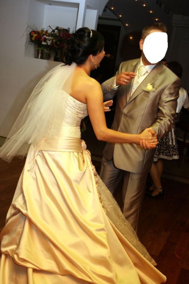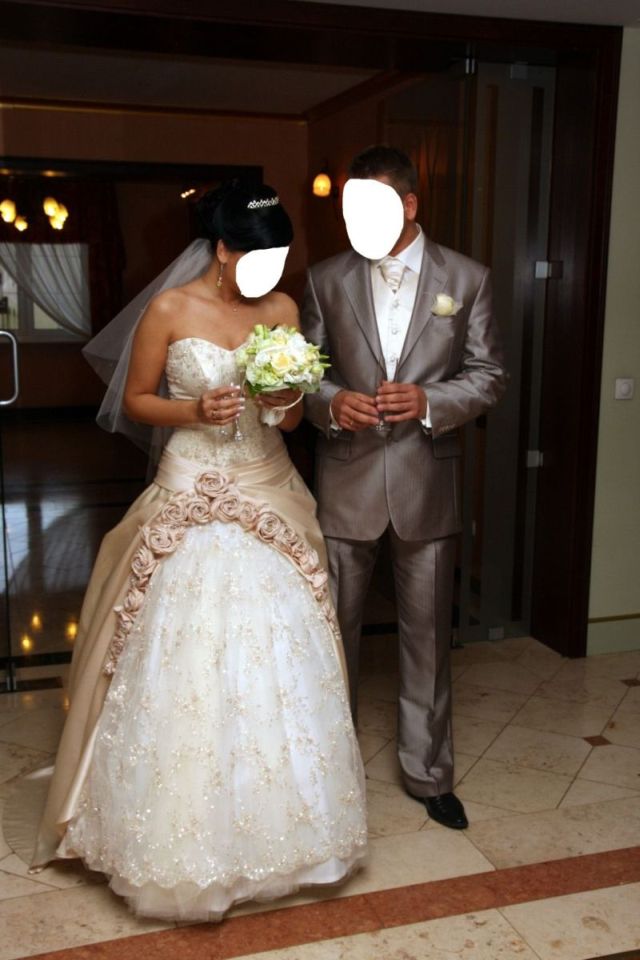 Sprzedam bajeczną suknię ślubną szytą na rozmiar 38-40 na wzrost 169cm w kolorze szampański ecru.