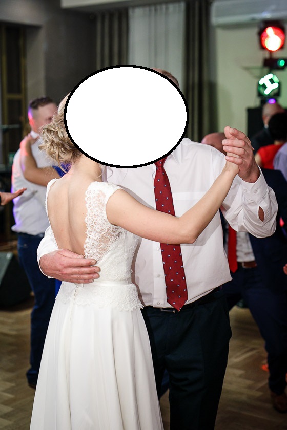 Suknia jest lekka i zwiewna, bardzo wygodna, doskonale podkreśla figurę, pięknie układa się w tańcu. Góra sukni wykonana jest z dobrej jakości koronki – zmysłowo eksponuje plecy, dół z muślinu z jedwabiem.