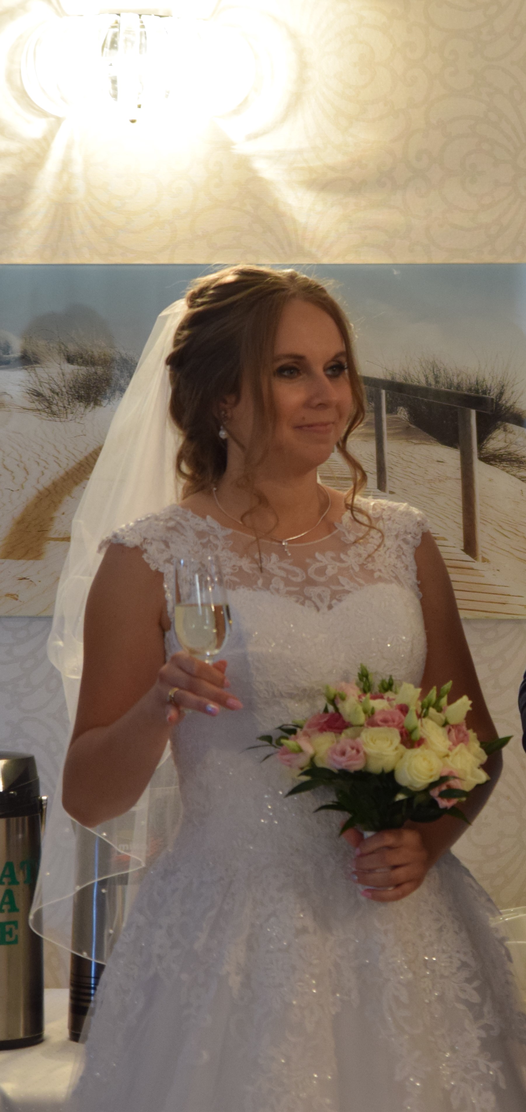 Witam, mam do sprzedania białą suknie ślubną. Góra sukni ma dekolt w kształcie serca i ozdobiona jest piękną koronką, która płynnie przechodzi na tiulowy dół, składający się z 5 warstw. Na dole sukni znajdują się różne koronkowe aplikacje kwiatów. Suknia jest wiązana na plecach, więc pasuje na rozmiar od 38 do 42, na wzrost około 170 z 5 centymetrowym obcasem. Do sukni dodaje koło, dzięki czemu suknia ładniej się układa oraz dwuwarstwowy welon z kryształkami o około metrowej długości. Suknia była założona tylko raz i została wyprana. Jest bardzo wygodna i lekka. Serdecznie zapraszam do przymierzania, na które można się umówić pod numerem telefonu 506 330 312.