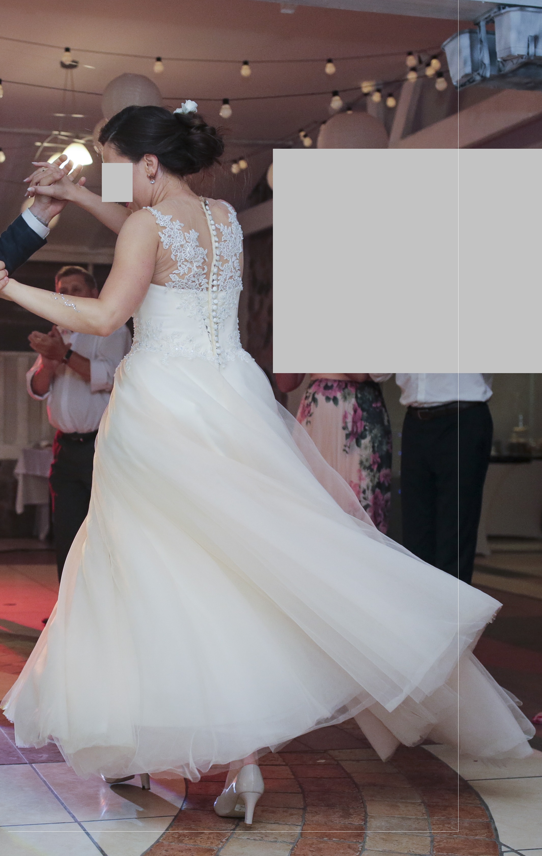 Sukni należy oddać to że jest kreatywna i daje wiele możliwości. Bez koła tworzy kształt A-idealna jako rustykalna, z małym kołem tworzy literę A na romantyczne, klasyczne wesele, natomiast jak dodamy duże koło staje się princessą czyli dla księżniczki na królewskie wesele. Zawsze można też zrezygnować z koronek i staje się klasyczną suknią.