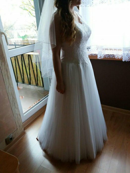 Suknia ślubna biała, litera A, koronka, tiulSuknie ślubne » Śląskie » Bytom