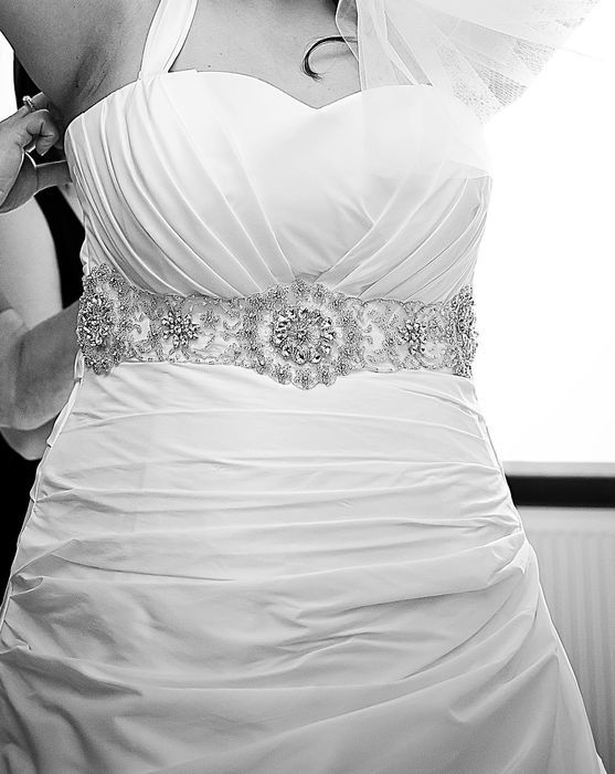 Mam do sprzedania piękną suknię ślubną z kryształkami Svarowskiego (ozdobny pas wyszywany kryształkami).