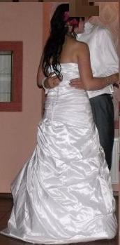 Witam, mam do sprzedania bardzo ładną suknię ślubną w kolorze krystalicznym białym. Tkanina z jakiej wykonana jest suknia to tafta inteligentna. Suknia jest w całości, z tyłu jest sznurowany gorset, dzięki któremu jest możliwość regulacji. Suknia jest bardzo wygodna i idealnie się dopasowuje. Dzięki strukturze tkaniny, mozna zamaskować w subtelny sposób niedoskonałości swojej sylwetki. Suknia była używana tylko raz, jest wyczyszczona, nie ma na niej żadnych śladów użytkowania i czeka na nowego właściciela. Suknia jest uszyta na osobę ok. 170cm + obcas ok. 7-9cm. Wymiary to: biust: 84cm, talia: 73cm, Polecam