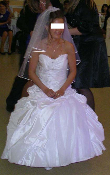 Mam do sprzedania piękną dwuczęściową suknię ślubną zakupioną w kwietniu 2011r, w salonie „Anna”. Suknia ta jest na wzrost 156, plus obcasy 5-cm, rozmiar sukni 36. Owa suknia pięknie się prezentuje, nie posiada żadnych uszkodzeń, gratis welon.