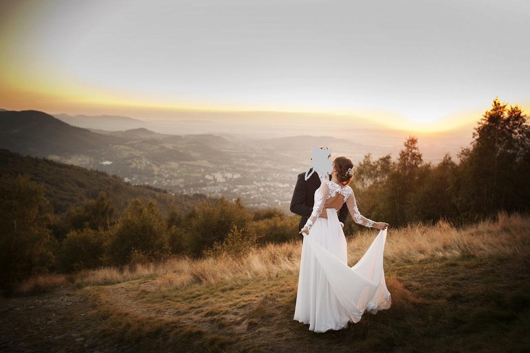 Sprzedam suknię ślubną, dodatkowo mogę sprzedać widoczne na zdjęciu kolczyki. Rozmiar sukni 36, ewentualnie 38, z dużym biustem. Wysokość: 179cm + 6cm buty. Suknia jest bardzo wygodna, nie było w niej ciepło, mimo że ma długie rękawki, polecam także na wesele w lecie. Do sukni dołączam ozdobę do włosów zrobioną z tej samej koronki co suknia (widoczna na zdjęciach). Na wszystkich zdjęciach jestem w sukni bez halki, ale dołączam dodatkowo halkę, która nieco może rozszerzyć dół, do halki można także włożyć nieduże koło, które jeszcze bardziej rozszerza, ale nie jest ciężkie. Mi zależało na romantycznym efekcie, dlatego nie używałam halki ani koła. Dołączam także tren, który daje piękny efekt, jak widać na niektórych zdjęciach. Tren jest odpinany. Na zdjęciach nie mam welonu, ale także mogę dołączyć, jest to zwykły, dość krótki welon bez ozdób z uwagi na bogatą górę sukienki. Suknia jest niezniszczona. Na zdjęciach może tego nie widać, ale do koronki są doszyte w niektórych miejscach kryształki swarovskiego, co daje delikatnie błyszczący efekt w słońcu i doskonale pasuje do kolczyków w tych samych kryształków.