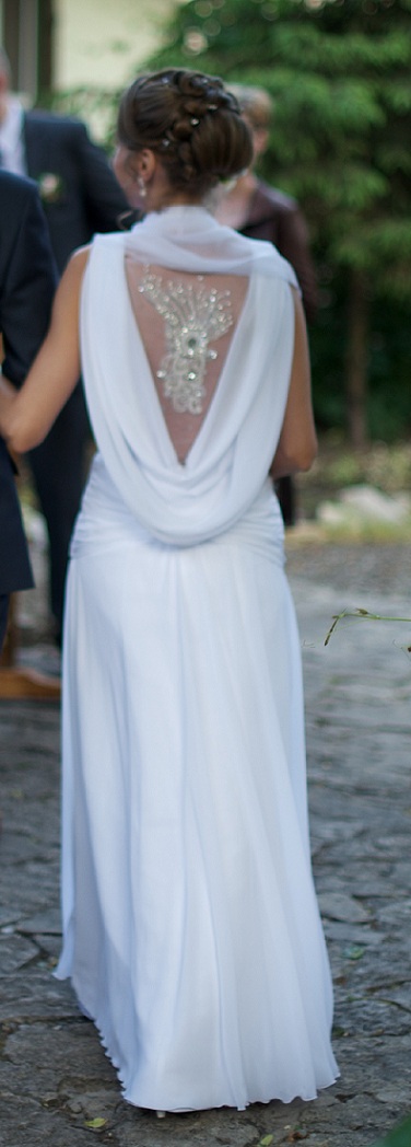 Mam do sprzedania suknię ślubną koloru białego szytą na wzór firmy KARINA model AVICKI na wzrost 162cm + 5cm buty, rozmiar około 36. Suknia była szyta w maju 2012r. Suknia z motywem tatuażu tzw "kamienie Svarowskiego"(wygląda rewelacyjnie) na plecach i na przodzie. Posiada z przodu jak i z tyłu motyw wody co dodaje jej lekkości i delikatności. Pięknie podkreśla figurę oraz wyszczupla w tali. Jest bardzo wygodna, bez zbędnych halek czy kół, zapinana na zamek z lewej strony. Dodaję zawieszany biały szal, którym w chłodny dzień można okryć ramiona. Suknia jest w bardzo dobrym stanie, po praniu. Dla zainteresowanych możliwość przymiarki na miejscu. Posiadam również buty ślubne w rozmiarze 37 do sprzedania za niewielką kwotę. Więcej zdjęć mogę przesłać na e-mail Gorąco polecam i zapraszam. Tel 889 963 735 lub 889 963 734