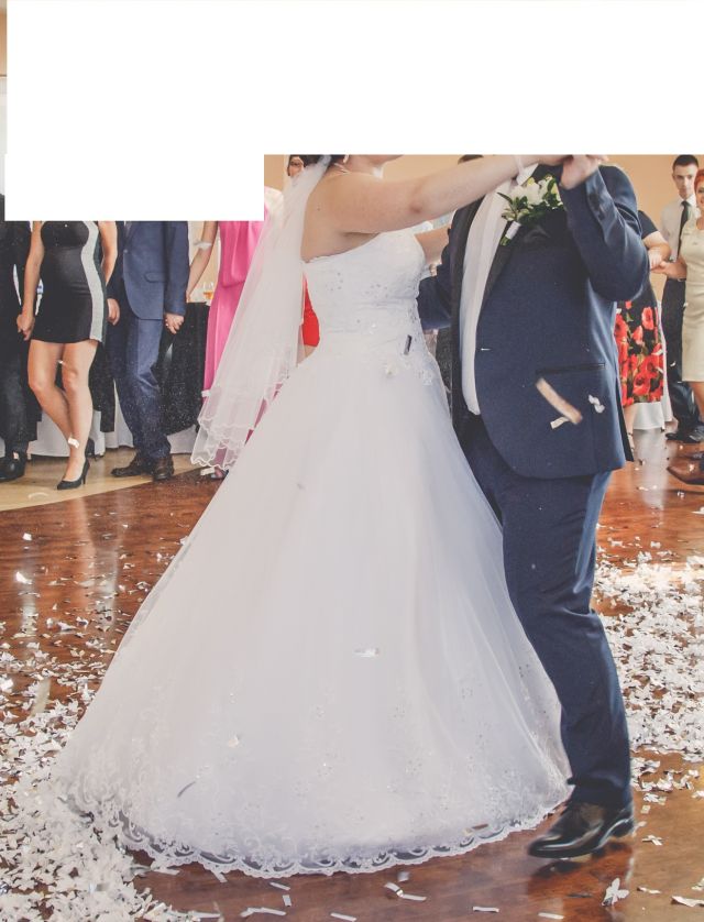 Suknia była szyta na osobę o wzroście 167cm +8 cm obcas.