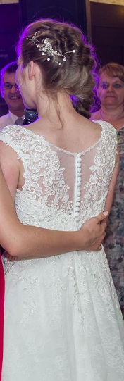 Romantyczna suknia w odcieniu śmietankowym. Cała w koronkach fason w litere A dekolt w delikatną łódkę.