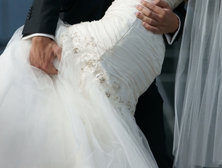 Elegancka, jednocześnie robiąca wrażenie suknia ślubna dla osoby drobnej, szczupłej, niewysokiej.