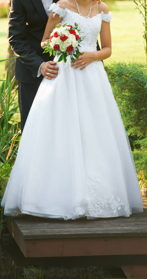 Mam do sprzedania piękna suknię Ślubną typu Princessa koloru białego. Rozmiary sukienki To 36/38 na wzrost 165 cm +5 cm obcas Suknia jest jednoczęściowa, z tyłu zapinana i wiązana umożliwia dopasowanie do sylwetki. Gorset sukienki jest bogato zdobiony koralikami, ręcznie wyszywany. Ramiączka sukienki delikatnie opadają na ramiona, nadaje sukni urok. Dół sukni wykonany jest z 4 warstw tiuli, zdobiony jest delikatnymi kwiatami. Halka posiada 2 warstwy wykonane z lśniącej satyny. Suknia bez żadnych uszkodzeń. Suknia jest po praniu chemicznym. Suknia jest bardzo wygodna i elegancka. ( Halka do sukni gratis )więcej informacji, zdjęcia prześle e-mailem. Zapraszam do przymierzenia . Kontakt: 505-604-857 Gorąco polecam!