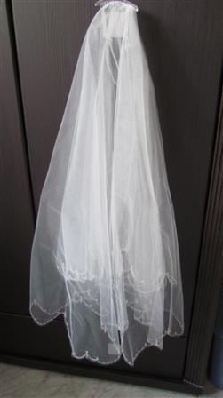 Cena obejmuje także welon. Suknia oryginalnie posiadała tren, który został odcięty na moje życzenie w salonie, z resztek tiulu z trenu został wykonany szal (zdjęcie), na wypadek chłodnego dnia, jednakże w moim przypadku nie było konieczności jego użycia.