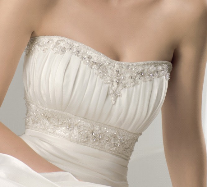 Przepiękna suknia renomowanej francuskiej firmy Elianna Moore model Anastasia. Uszyta z organdyny, ozdobiona pasem koronkowym, wyszywanym kamieniami typu Swarowski i koralikami. Z tyłu suwak. Długość sukni 112 cm. Suknia jednoczęściowa, halka wszyta w suknię. Suknia z wyprzedaży z salonu ślubnego KAMI z Bielska Białej. Do sukni oferujemy buty ślubne gratis. Istnieje możliwość dopasowania sukni do sylwetki nowej właścicielki. Można ją zwęzić lub poszerzyć.
