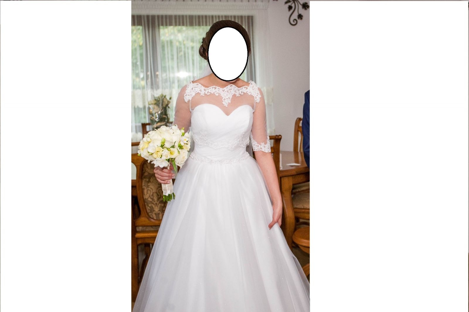 Suknia jest w bardzo dobrym stanie, bez uszkodzeń i śladów używania.Jestem pierwszą właścicielką. Wyczyszczona w salonie sukien ślubnych.