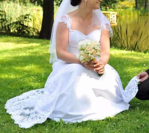 Elegancka suknia ślubna koronkowa z trenem 38/40